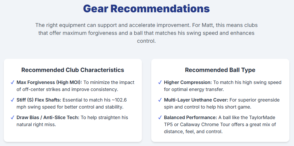 Golf Ball & Club Recommendations: The Right Tools for Matt’s Game