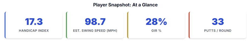 Like many mid-handicappers, Daniel has a solid foundation. His ball-striking is consistent, and he avoids round-killing penalty strokes. The big issue? His Strokes Gained data revealed that his approach shots and short game were costing him dearly, leading to a low Greens in Regulation (GIR) percentage of just 28%. He was scrambling on nearly 13 holes per round, putting immense pressure on his chipping and putting.