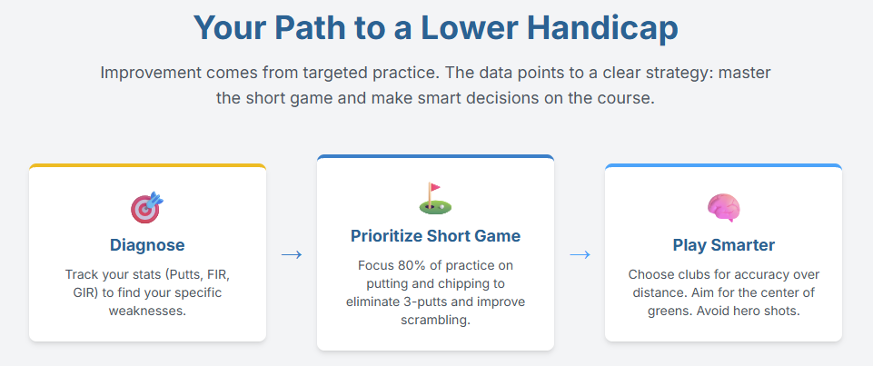 While you might lose more strokes in approach or off the tee, the biggest and fastest opportunities for improvement often lie in your short game (Around the Green and Putting). It’s generally easier to eliminate a three-putt or improve a chip than to consistently hit a 200-yard approach shot to within 10 feet. This data reinforces the age-old advice: the short game is the fastest way to lower your scores!